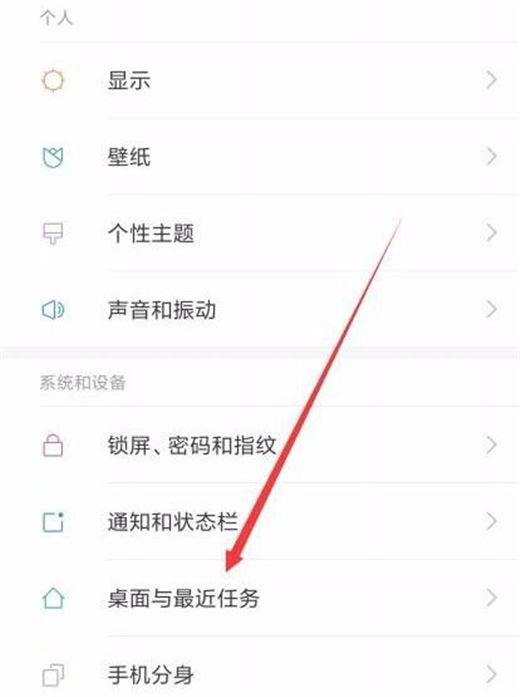 2、在红米手机设置页面中,点击【桌面与最近任务】菜单项,