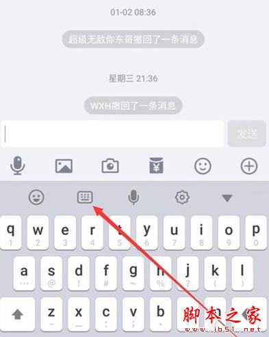 1、首先打开一个聊天界面,唤醒输入法,然后点击键盘模样的图标。