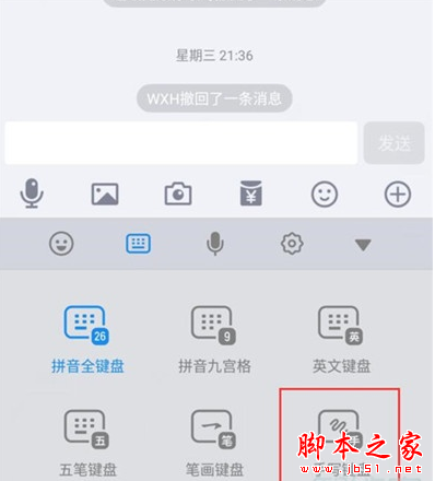 2、在键盘界面中就有手写键盘,点击手写键盘