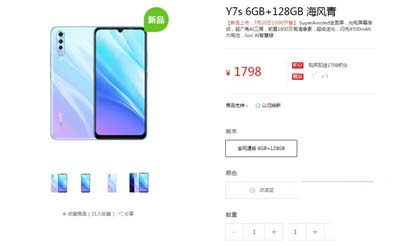 最后是价格,vivo Y7s(6+128GB)售价1798元,目前该机已开放预约并将于7月20日上午10时正式开售。