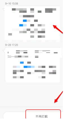 4、您会看到被拦截的短信的详细内容,点击屏幕下方的【不再拦截】就可以解除拦截。
