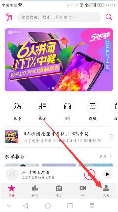 2、进入音乐App后,点击右下角我的。