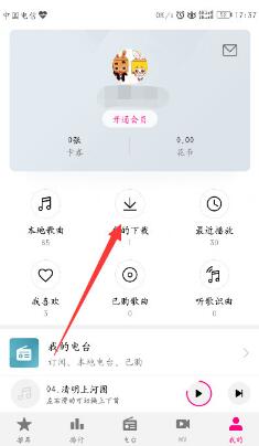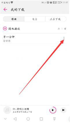 4、进入我的下载后,点击歌曲的菜单。