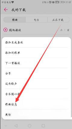 5、在歌曲菜单中选择歌曲信息。