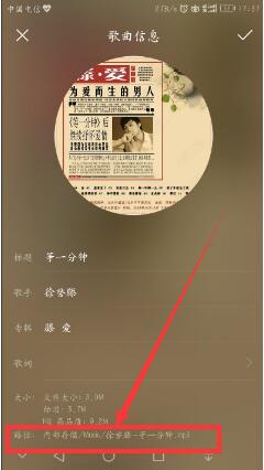 6、在歌曲信息中就可以看到歌曲的存放位置。