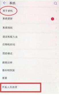 3、进入系统页面后找到并点击打开【开发人员选项】,没有这个选项的话,点击上面的【关于手机】,不断点击【版本号】,直到出现开发者选项已打开的提示。