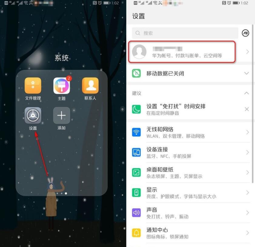 1、打开华为手机,点击设置图标,然后点击华为账号。
