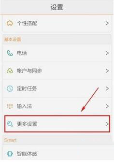 2、进入设置后,向下滑动,选择【更多设置】。