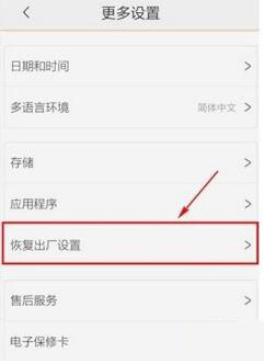 3、再次向下滑动,找到【恢复出厂设置】进入。