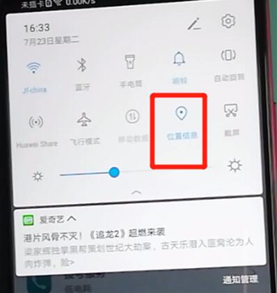 方法二:下拉菜单栏,点亮定位服务按钮同样可以开启定位服务