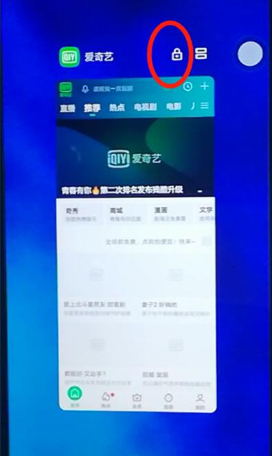 3.以爱奇艺为例,松手后我们就会发现应用的右上角多了一个小锁,此时再清理后台应用也不会被清理掉了