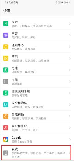 2、然后进入设置以后,下拉到最后点击【系统】。