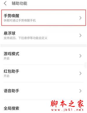 3、在辅助功能界面,找到【手势好唤醒】选项,点击打开。