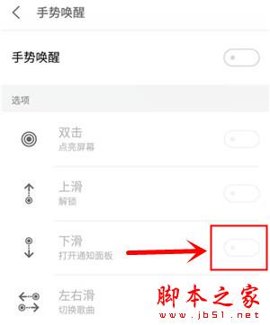 4、在手势唤醒工具栏主页面,将下滑通知面板的开关打开即可。