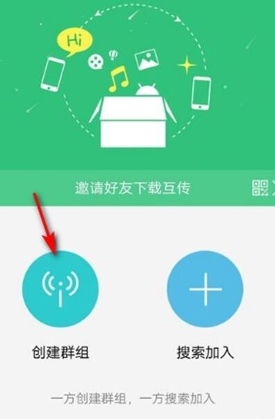 2、进入vivoy7s手机互传软件界面后,点击创建群组,等待别人加入。