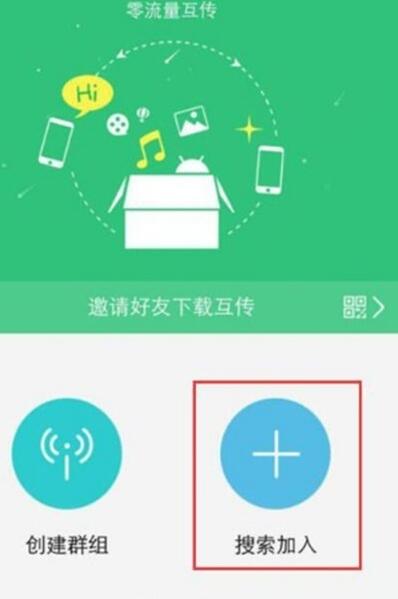 3、用另一台手机同样进入互传软件,点击搜索加人。
