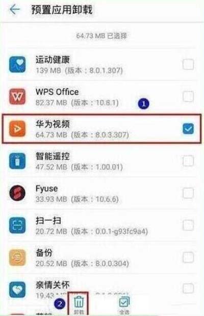 6、最后点击【卸载】即可彻底删除卸载,不过只有少数几个预装应用支持完全彻底地卸载,比如便签,计算器等,而其他一些应用,只支持不完全卸载,仍能通过手机管家进行恢复。