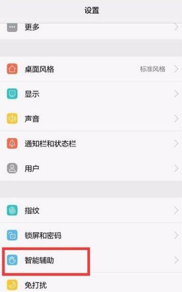 2、在设置菜单下,往下滑动屏幕找到并点击打开【智能辅助】选项。