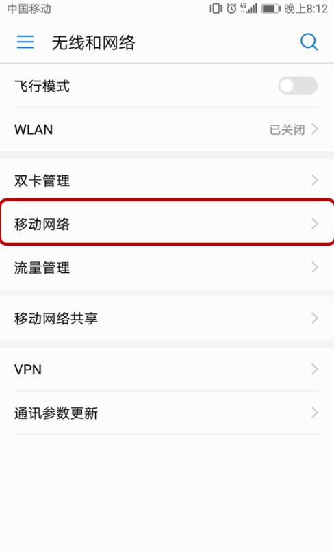 4、在移动网络页面,点击打开卡1或卡2下面的【VoLTE通话】的开关即可打开使用此功能,关闭开关即可关闭VoLTE。