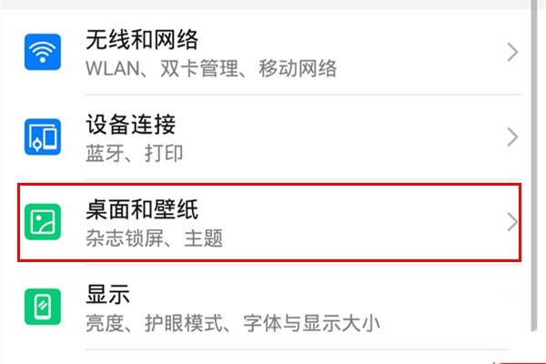 2、进入设置后点击打开【桌面和壁纸】。
