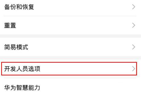 3、在系统菜单下点击进入【开发人员选项】,