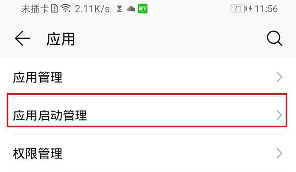 2、点击进入如下页面后,点击进入下面的【应用启动管理】,
