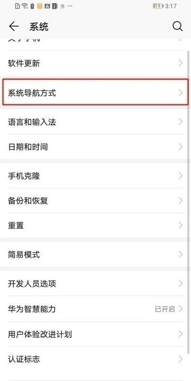 3、然后点击【系统导航方式】。