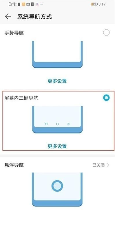 4、点击【屏幕内三键导航】右边的按钮,开启即可显示虚拟导航键。