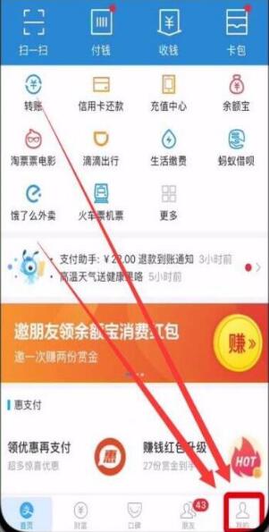 1、打开华为nova5iPro桌面上的支付宝,点击右下角的【我的】。