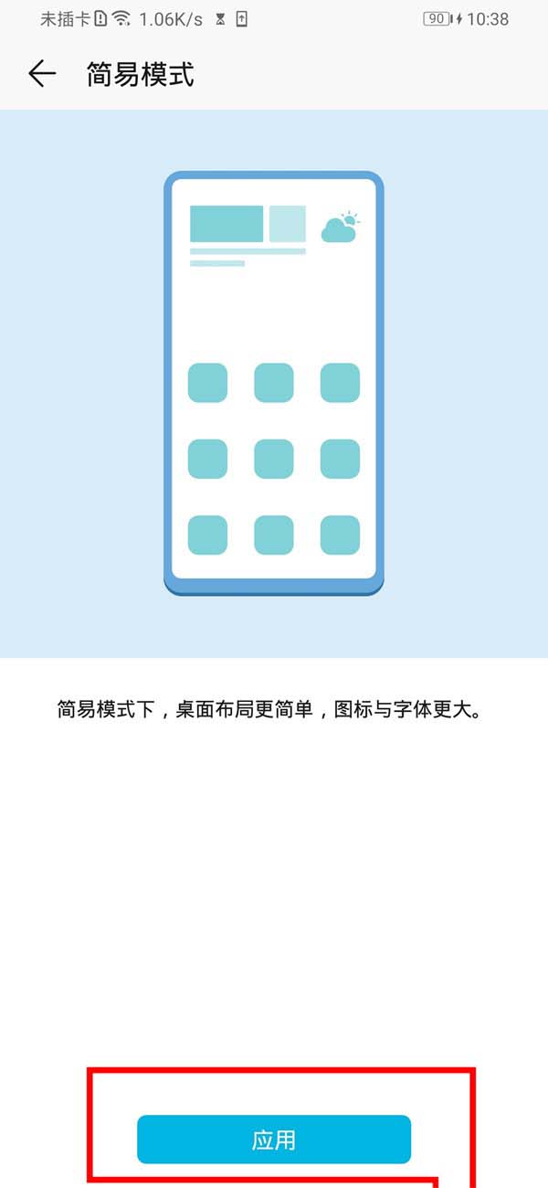 4.进入如下页面后,点击页面底部的【应用】勾号那里即可完成设置,这样长辈使用智能机也会更加方便。
