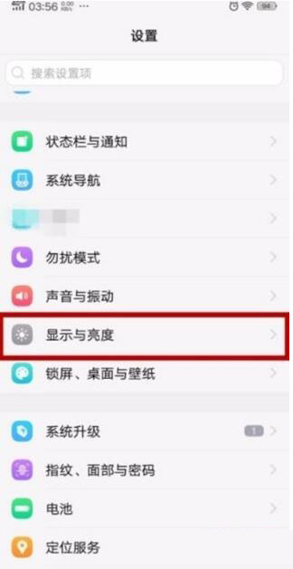 2、在设置菜单下找到并点击进入【显示与亮度】。
