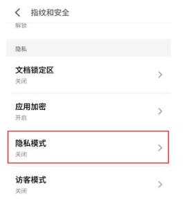 3.找到【隐私模式】选项,点击打开后面的开关。