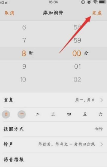 3、不能直接点击返回,要点击右上角的完成,闹钟才算设置好了。