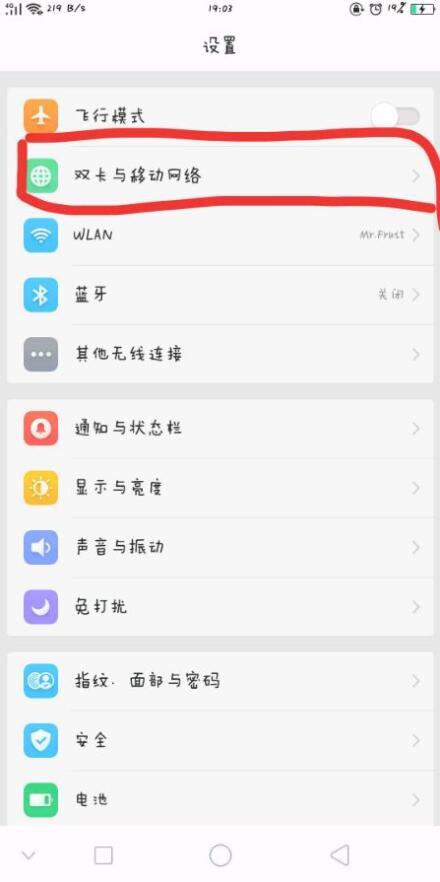 1、打开手机【设置】,点击【双卡与移动网络】。