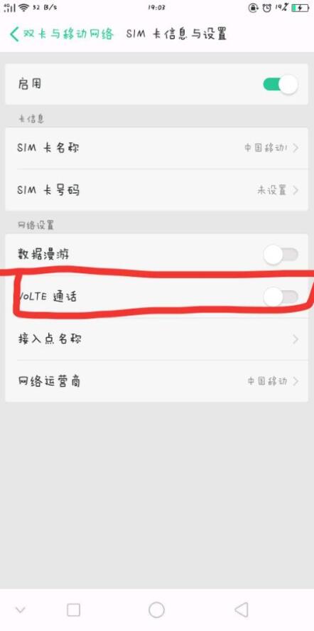 3、点击【VoLTE 通话】右侧的按钮关闭,手机状态栏的hd显示就消失了,赶紧试试吧。