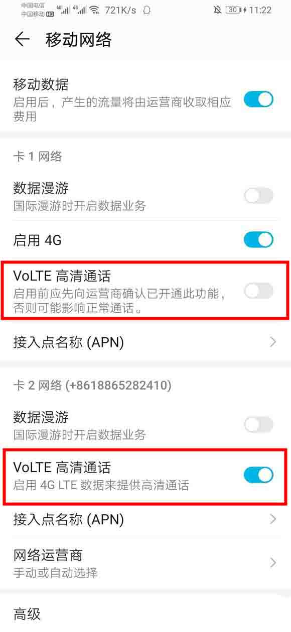 荣耀9x是双卡双待双volte双通,双volte双通场景前提是双卡都需要向运营商网络开通volte业务,并且开启volte功能。