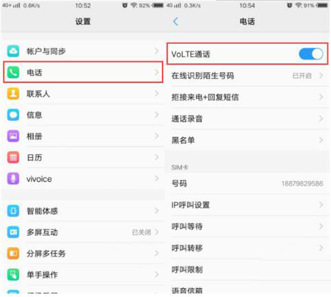 vivox23幻彩版开启高清语音通话方法:进入手机【设置】--【电话】--【VOLTE通话】-- 将【VoLTE通话】开启即可。