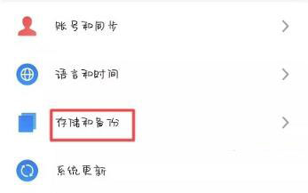 2.然后点击打开储存和备份,点击恢复出厂设置,