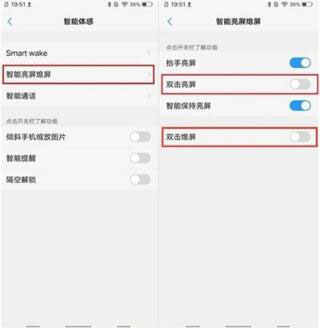 2、在智能体感界面,接着点击【智能亮屏熄屏】选项,找到【双击息屏】选项,打开开关,这样就能使用双击息屏功能