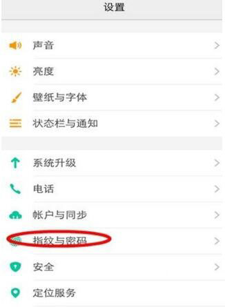 2、打开设置,在里面找到【指纹和密码】。