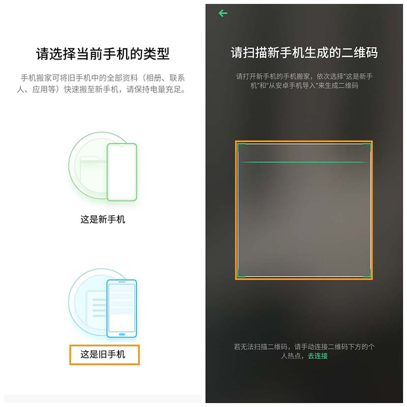4、然后用另外一台手机则选择【这是旧手机】出现扫码界面。