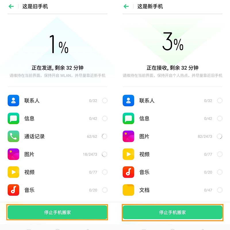7、然后就等待传输数据就好,为避免搬家数据异常建议留在搬家页面待完成后再操作手机。