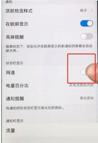 3、然后将网速的开关打开即可在状态栏显示网速。