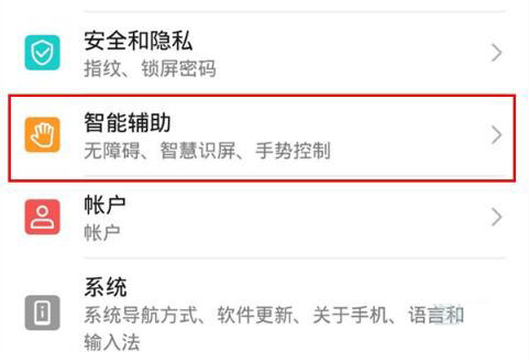 2、在设置菜单下找到并点击打开【智能辅助】。