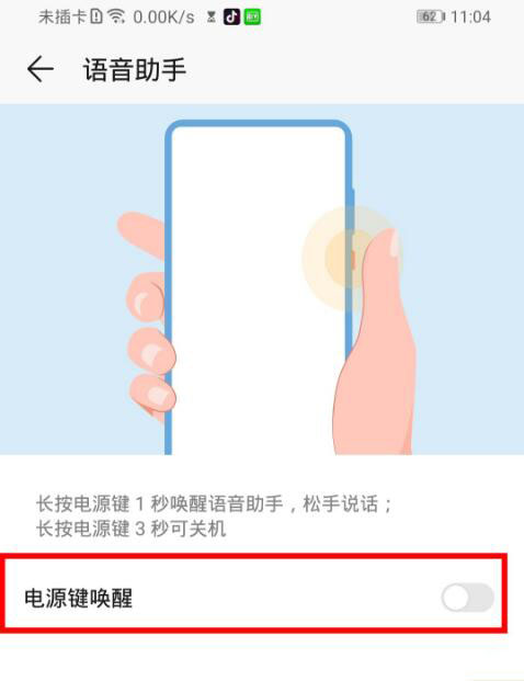 5、打开【电源键唤醒】右侧的开关。让我们想要启用语音助手时只需要长按电源键1秒即可唤醒语音助手。