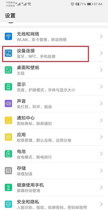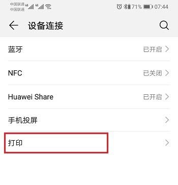 2、进去华为p30设置之后,点击设备连接->打印,如下图所示: