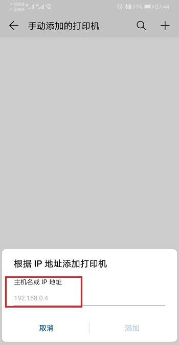 5、输入打印机的IP地址进行手动添加,可以成功使华为p30成功连接打印机了,需要注意的是,打印机要支持无线连接,如下图所示:
