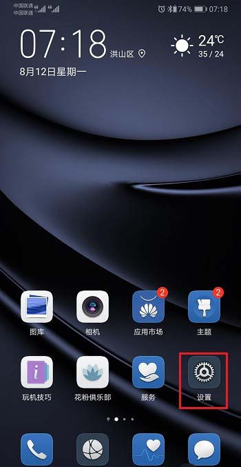 1、打开华为p30,点击桌面的设置,如下图所示: