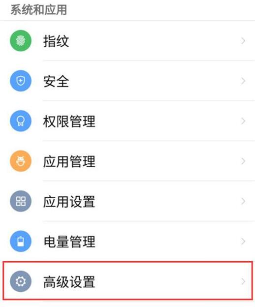 第二步:点击进入设置之后,在设置界面找到【高级设置】选项,点击打开
