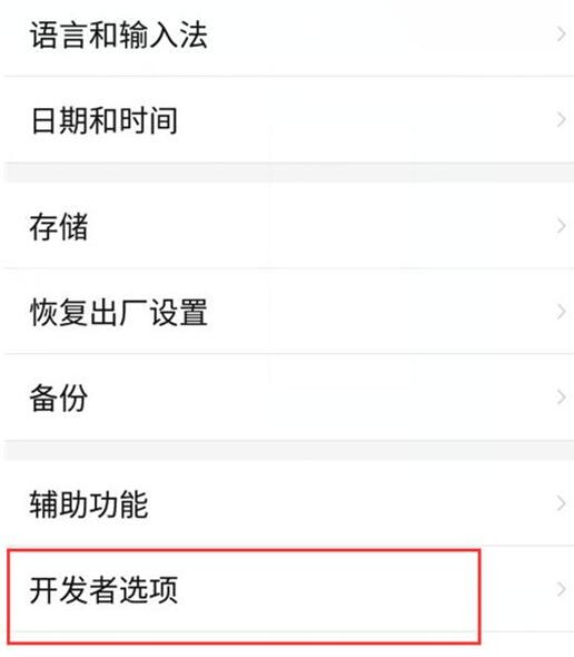 第三步:进入高级设置之后,找到【开发者选项】功能,选择打开